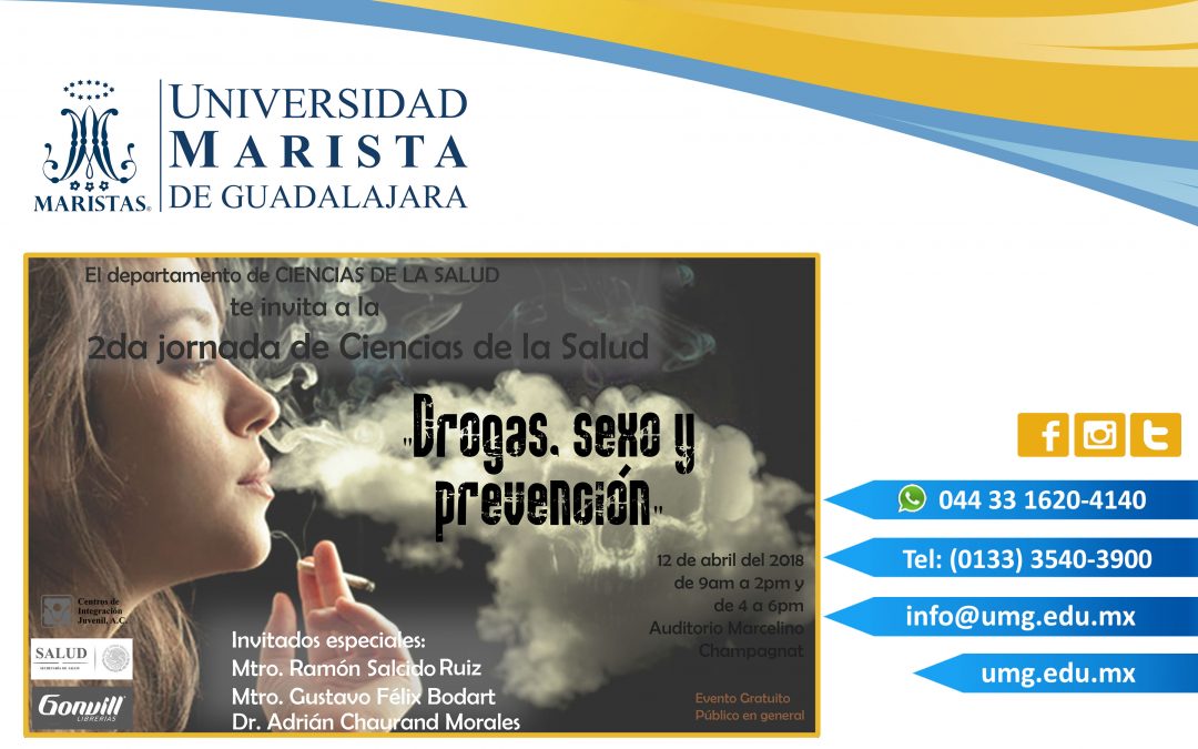 La Universidad Marista de Guadalajara a través del departamento de Ciencias de la Salud, invitan a la 2da Jornada de la Salud. 12 de abril 2018 9:00 a 14:00 – 16:00 a 18:00 horas. Auditorio Marcelino Champagnat Entrada Libre.