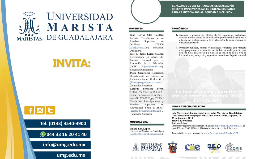 por Gestión de la Comunicación | May 22, 2018 | EventosLa investigación educativa ante el proceso electoral 2018.Esperamos tu participación el próximo 27 de junio a las 11:00 a.m.Entrada Libre.Auditorio Marcelino Champagnat.Universidad Marista de Guadalajara.