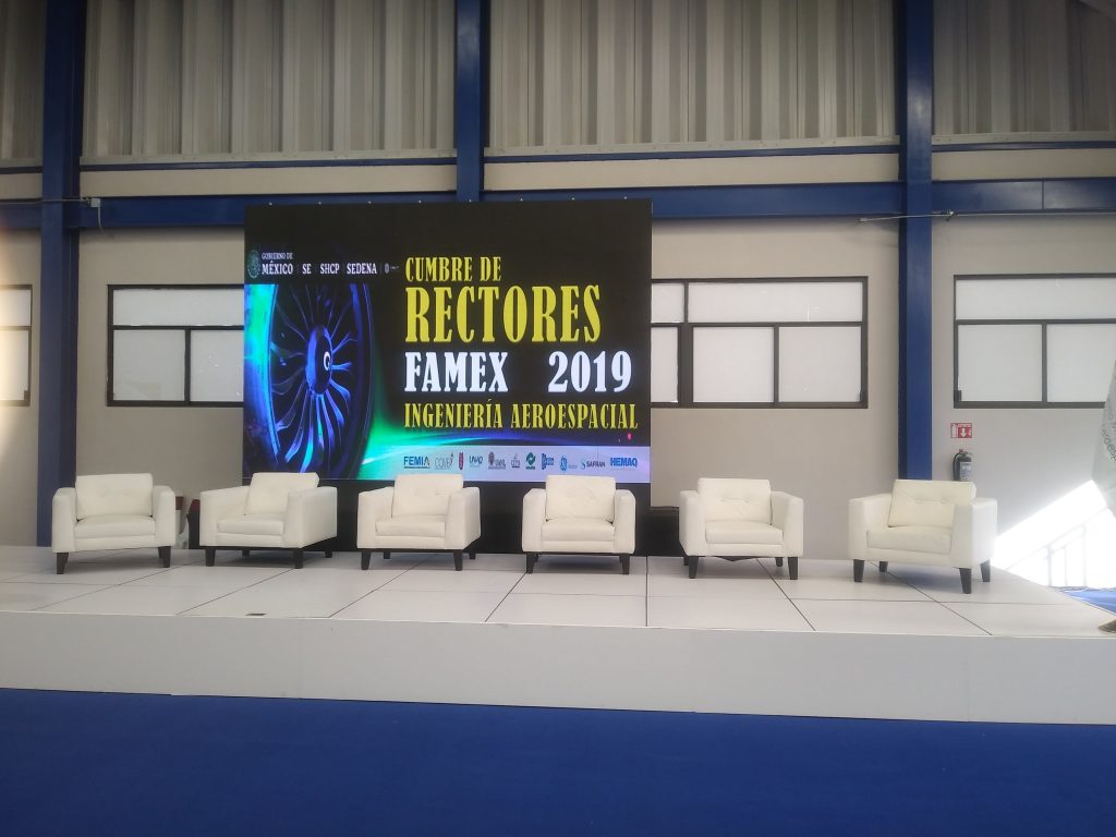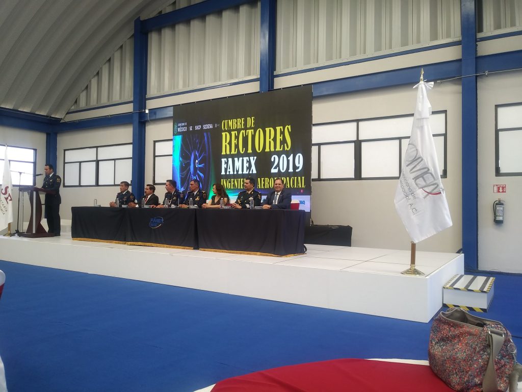 Alumnos de la Universidad Marista de Guadalajara visitaron las instalaciones de la Base Aérea de Santa Lucia (Aérea militar no. 1, Santa Lucía, Estado, México) donde se realizó la Cumbre de Rectores, dentro de la Feria Aeroespacial México 2019 FAMEX.