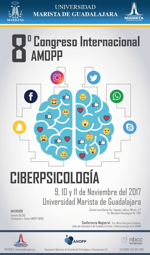 8° Congreso Internacional AMOPP CIBERPSICOLOGÍA. por Gestión de la Comunicación | Nov 1, 2017 | EventosLa Universidad Marista de Guadalajara será la sede del 8° Congreso Internacional AMOPP CIBERPSICOLOGÍA.Se lleva a cabo los próximos 09, 10 y 11 de Noviembre 2017.