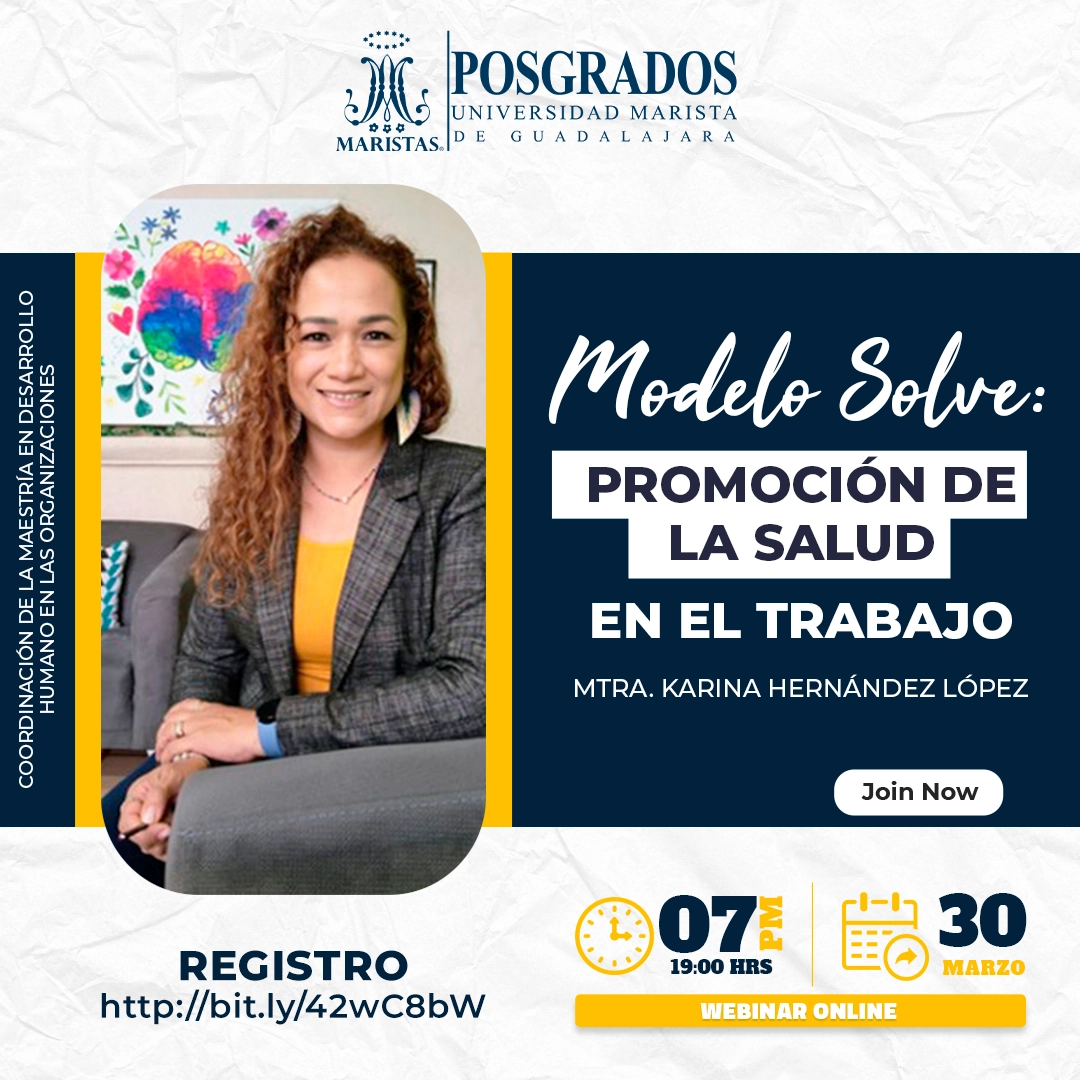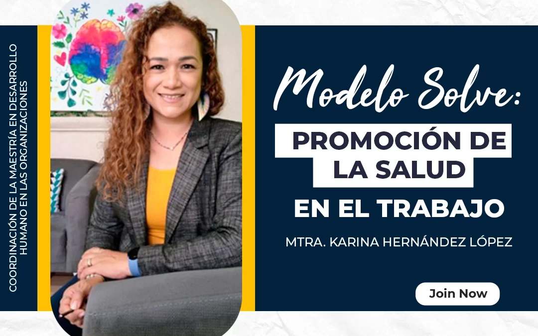 La Coordinación de la Maestría en Desarrollo Humano en las Organizaciones te invitan al Webinar: Modelo Solve: Promoción de Salud en el Trabajo.