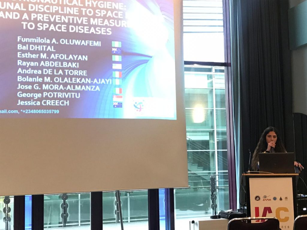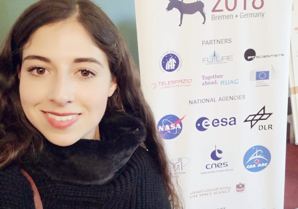 Posteriormente nuestra alumna del tercer semestre, tuvo la oportunidad de estar asistiendo al Congreso Internacional de Astronáutica celebrado en la misma ciudad de Bremen, Alemania. Viajó al mismo destino que sus demás compañeros pero con el logro de poder participar como ponente en el panorama de uno de los congresos con mayor importancia del mundo en el ámbito espacial.