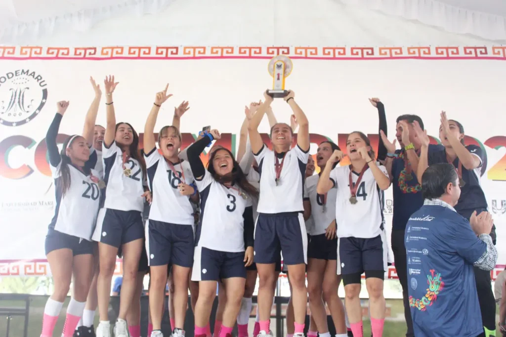 Con una delegación de 96 deportistas, nuestra institución compitió en disciplinas como futbol, baloncesto (modalidades 3×3 y tradicional), voleibol, tochito y tenis de mesa. Los resultados fueron sobresalientes, con el primer lugar en futbol femenil como uno de los mayores logros, además de varios segundos y terceros lugares en otras disciplinas. Este esfuerzo colectivo permitió a nuestra delegación obtener el Trofeo Marcelino Champagnat, otorgado a la universidad con mayores éxitos deportivos.