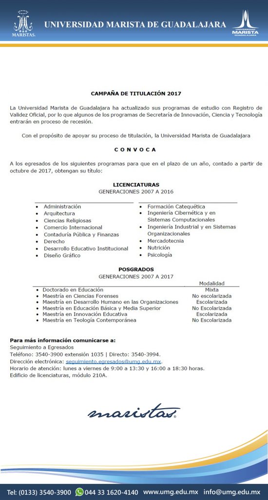 Con el propósito de apoyar su proceso de titulación, la Universidad Marista de Guadalajara