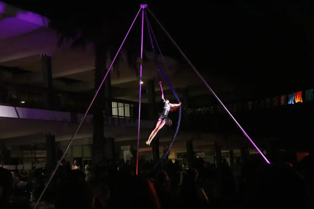 En el escenario del pueblo disfrutamos de diversas presentaciones del talento de nuestra comunidad estudiantil, con disciplinas como guitarra, hiphop, jazz, baile folclórico, jazz, canto, ritmos latinos y danza aérea.