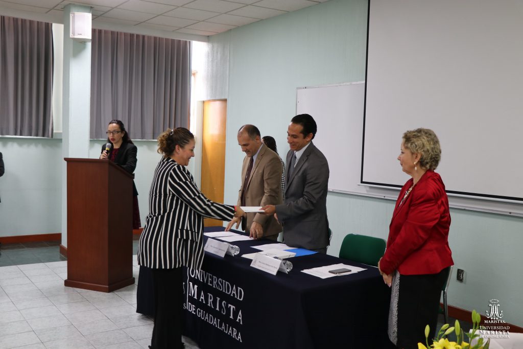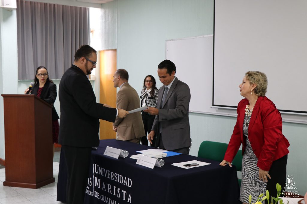 Para concluir la jornada se llevó a cabo el acto académico de titulación con las presencias de: Mtro. Lizardo Contreras Sosa Vicerrector, Dra. Leticia Rodríguez San Martín Coordinadora de las Maestrías en Desarrollo Humano en las Organizaciones, Estrategias de Aprendizaje y Coordinadora del Curso de Titulación por Experiencias Profesionales; Dra. Liliana Lira López Profesora Investigadora y Coordinadora del Doctorado en Educación y del Comité de Investigación, Mtro. Alejandro Calera Suárez Jefe del Departamento de Ciencias Sociales, Humanidades y de la Salud, Mtra. Beatriz A. Oceguera López Jefatura de Desarrollo Académico, Dr. Enrique González González Especialista en Anestesiología, Maestro en Cuidados Paliativos y Coordinador de la Especialidad en Gerontología y Hno. J. Guadalupe Salcido Nuñez Profesor de Tiempo Completo de Ciencias Sociales y Humanidades.