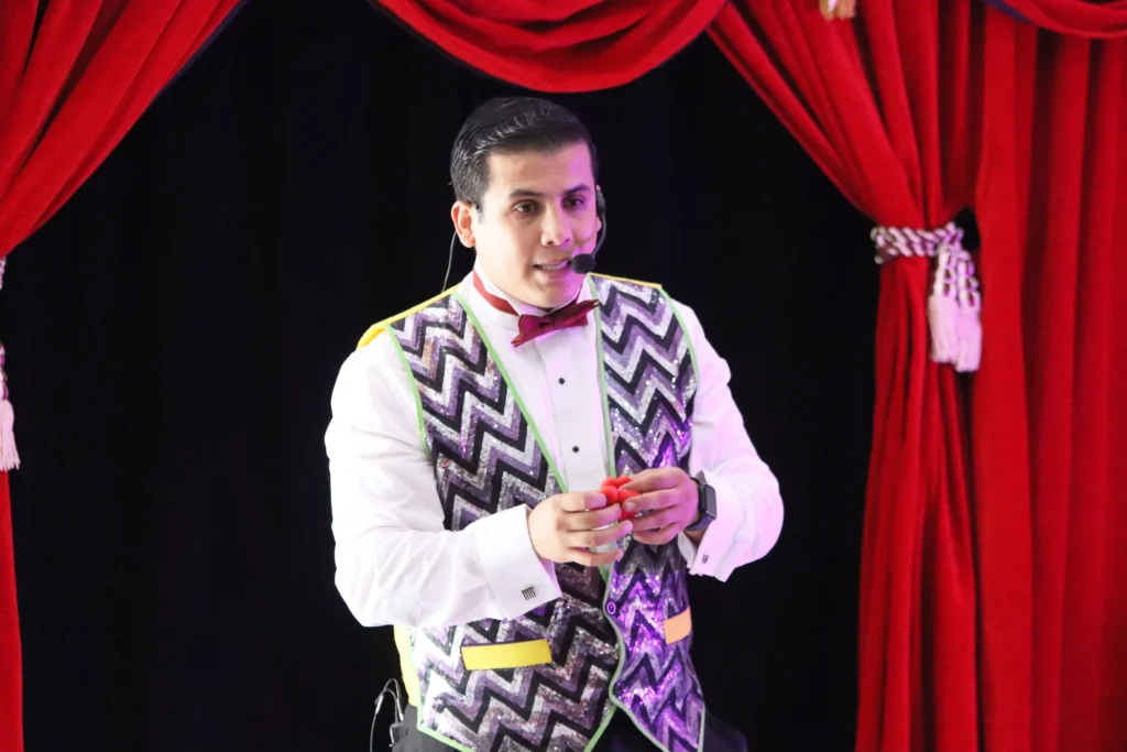 Mientras el público joven y adulto disfrutaba de las interacciones y dinámicas del expositor, en otra área del campus, niñas y niños gozaban del «Show de magia con valores» del Mago Alexander.