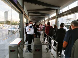 El día de ayer la Universidad Marista de Guadalajara fue invitada por la Secretaría de Innovación Ciencia y Tecnología al recorrido por las estaciones que conforman la nueva ruta de transporte «Mi Macro Periférico», en el que se invitaron a diversas universidades de nuestra metrópoli a conocer y socializar esta nueva ruta. A este evento presidido por el Secretario de Innovación, Ciencia y Tecnología, Mtro. Alfonso Pompa Padilla y el Secretario de Movilidad, Diego Monraz Villaseñor asistieron en representación del Rector, Doctor Roberto Carrillo López, el Mtro. Adolfo Ruíz Aceves, Jefe de Extensión y Vinculación, la Mtra. Olga Alvídrez Cedillo, responsable de Vinculación y la Mtra. Mayra I. García Mendoza, responsable de Desarrollo Institucional. Durante el recorrido se dieron a conocer aspectos importantes de la ruta “Mi Macro Periférico” (que aportará grandes beneficios de movilidad urbana) como: la seguridad, inclusión e innovación, destacando los módulos para lactarios, baños para gente con discapacidad, información en braille, piso táctil para discapacitados visuales y pantallas informativas entre otros.