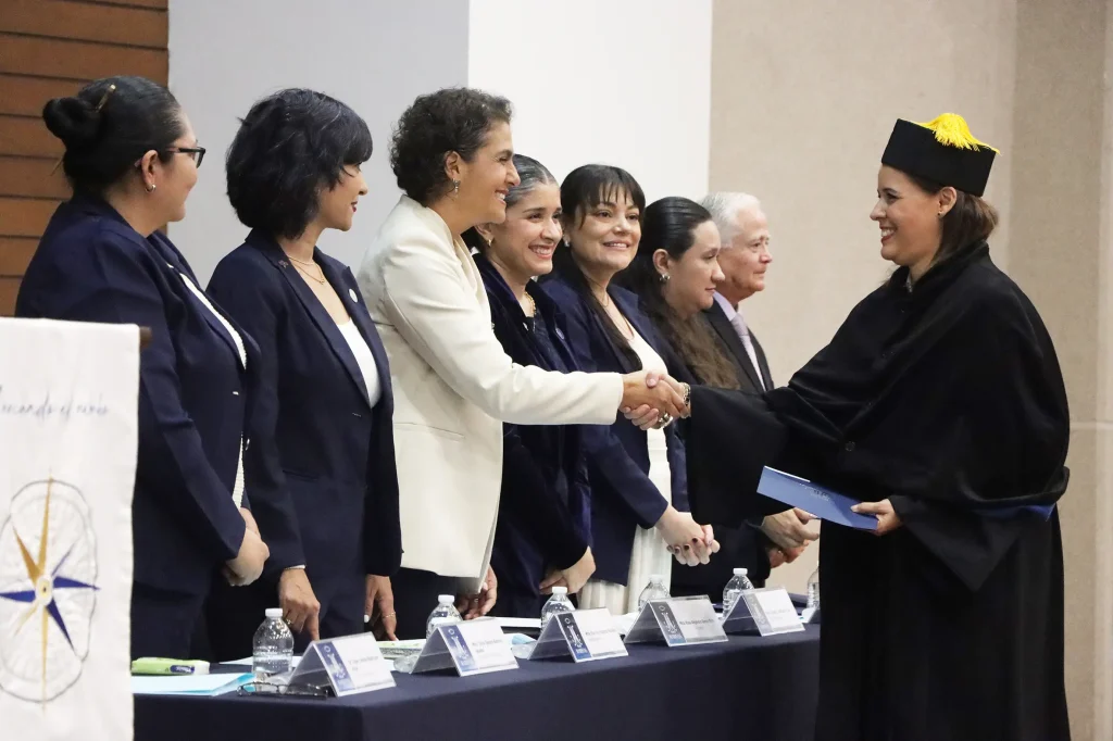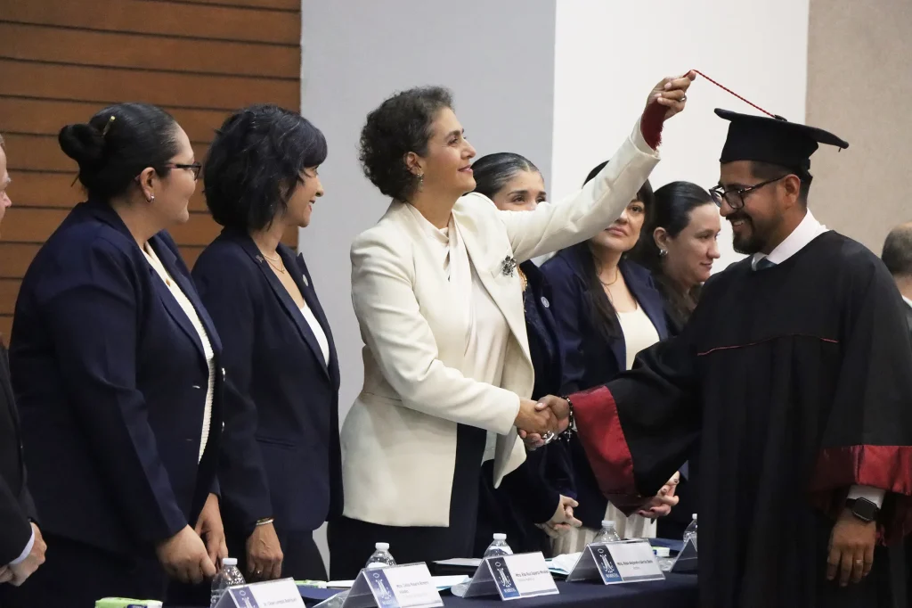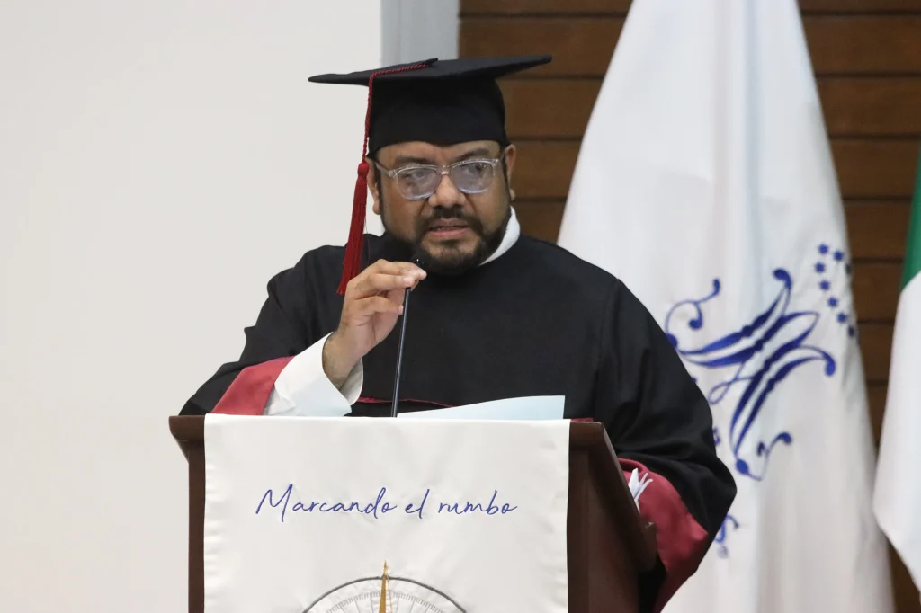 Por su parte, la rectora Mtra. Rosa Alejandra invitó a las y los graduados a mirar más allá del conocimiento acumulado y a ponerlo en diálogo con la realidad: «Un posgrado es sobre todo una oportunidad para consolidarse como agentes de cambio, generando conocimiento, construyendo colaboraciones, pero sobre todo, sembrando esperanza. Nunca dejen de preguntarse cómo usar lo aprendido para responder a los retos de nuestra actualidad».