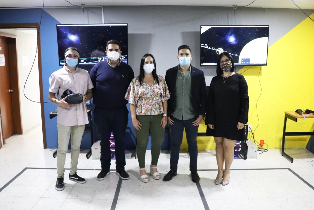 Con el objetivo de realizar proyectos en conjunto, prácticas profesionales y servicio social, la Universidad Marista de Guadalajara recibe a la directora del Planetario y Centro Interactivo de Jalisco «Lunaria», Marcela Flores, y al representante del Consejo Estatal de Ciencia y Tecnología de Jalisco (COECYTJAL) David Valle, quienes dieron un recorrido por los laboratorios y tuvieron la oportunidad de recrearse con el Laboratorio de Realidad Virtual, en donde conocieron a fondo el proyecto de “Del Universo al Aula”, proyecto apoyado por la Convocatoria Nacional para Fomentar y Fortalecer las Vocaciones Científicas 2019, del CONACYT.