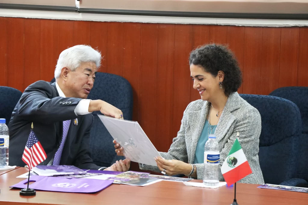 Durante la reunión, el Profesor Pablo Quiroz Zepeda, responsable de la Oficina de Internacionalización y Movilidad Académica de la UMG, destacó la línea de tiempo de trabajo en conjunto, al contar con tres estudiantes de licenciatura y una de posgrado participando exitosamente en el programa de movilidad virtual; además, de impactar a nueve estudiantes estadounidenses y seis maristas en un programa COIL liderado por la Dra. Litzy Galarza y la Dra. Amanda Berdeja Cantú, en áreas de comunicación y mercadotecnia binacional; un workshop gratuito dedicado al conocimiento y manejo de los medios masivos de comunicación, impartido por Dr. Butler Cain y el respaldo de EducationUSA en Guadalajara; y la interacción de buenas prácticas entre el Colectivo de Asuntos de Sexualidad y Género (CASEG) y la División de Diversidad, Equidad e Inclusión (DDEI) de University of North Alabama. Por su parte, la Mtra. Martínez, de EducationUSA resaltó que así como en estos momentos un estudiante de la UMG está postulándose para realizar sus estudios de posgrado mediante las líneas de becas que tienen a la mano, instó a las dos universidades a mantener un trabajo continuo donde más estudiantes puedan completar su educación marista en la universidad del sur estadounidense con un documento curricular. Ante ello, Dr. Zhang acordó con la Rectora la evaluación e incremento los espacios de cooperación académica y apoyos para los estudiantes de la UMG en University of North Alabama, tanto en su campus localizado en Florence, Alabama, como en China, a lo que la Rectora respondió con optimismo a la iniciativa con el seguimiento de la Oficina de Internacionalización y Movilidad Académica.