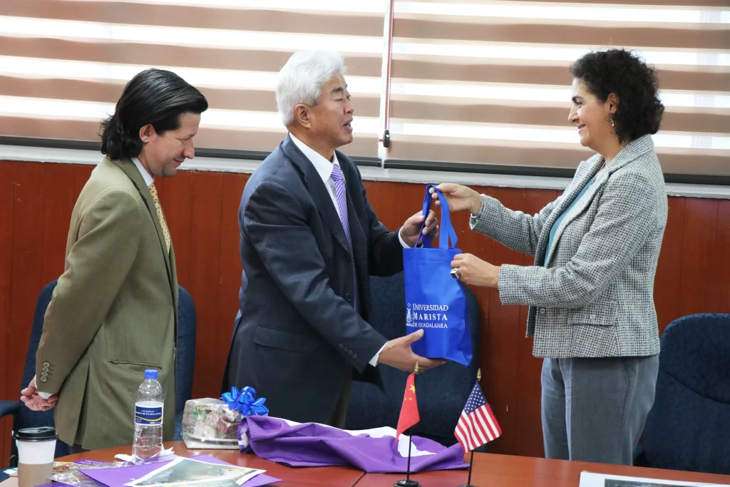 Este viernes 07 de octubre, Dr. Chunsheng Zhang, Vicerrector de la Oficina de Asuntos Internacionales de nuestra universidad hermanada desde el 2020, University of North Alabama, hizo una visita al campus de la Universidad Marista de Guadalajara, junto a la Mtra. Mabel Isnailm Martínez Hernández, Representante de EducationUSA en Guadalajara, con la intención de darle continuidad a la cooperación que se ha tenido entre las tres instituciones durante dos años de amistad y trabajo en conjunto.
